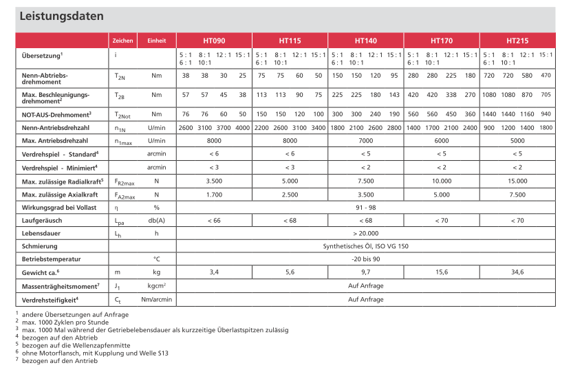 - Max. Beschleunigungsmoment von 38 bis 1080 Nm
