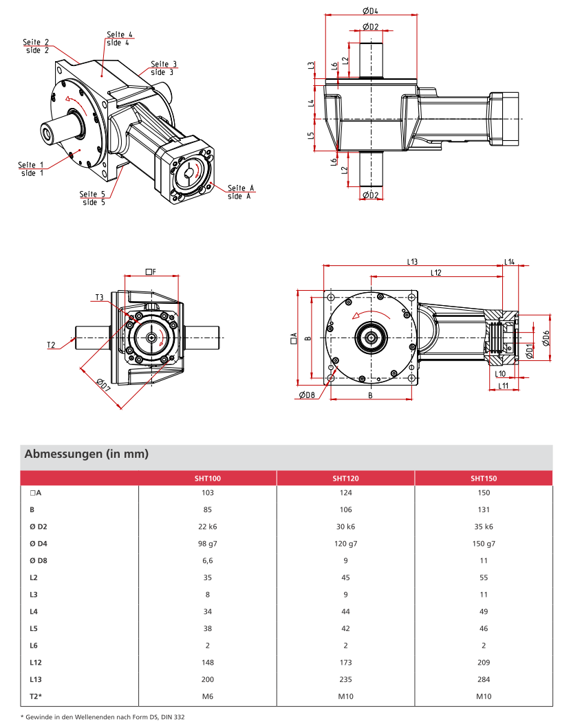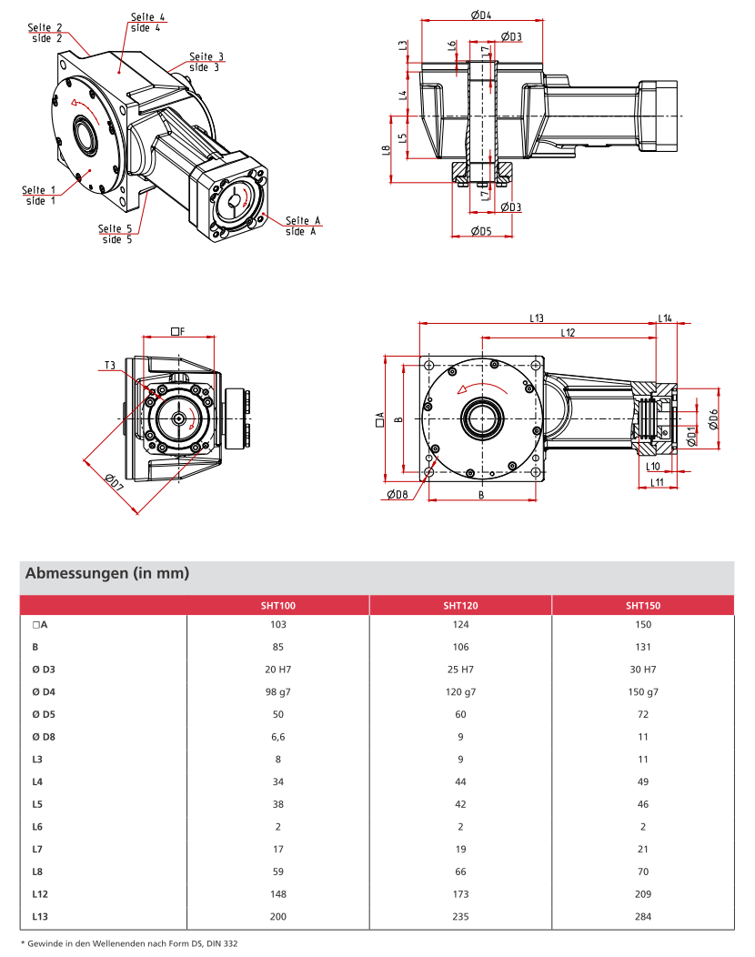 - Baugröße: | 100 | 120 | 150 |(Kantenlängen: 103/124/150 mm)