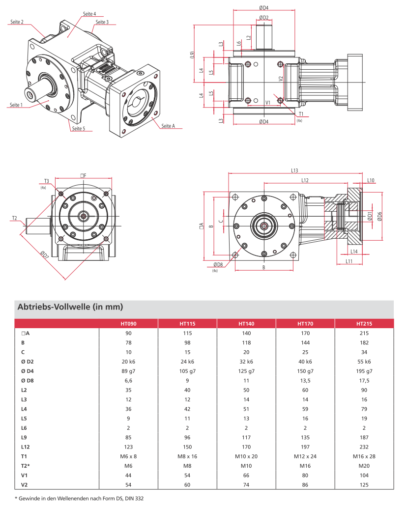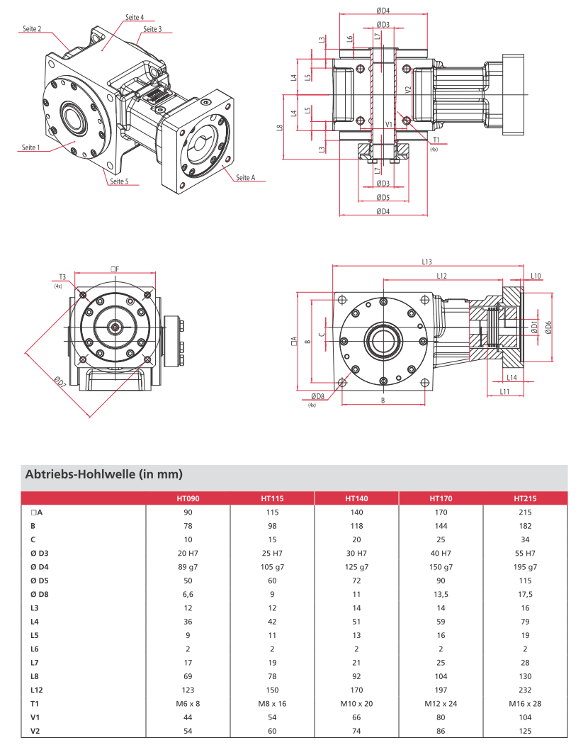 - Baugröße: | 090 | 115 | 140 | 170 | 215 |(entspricht Kantenlänge des Getriebes)