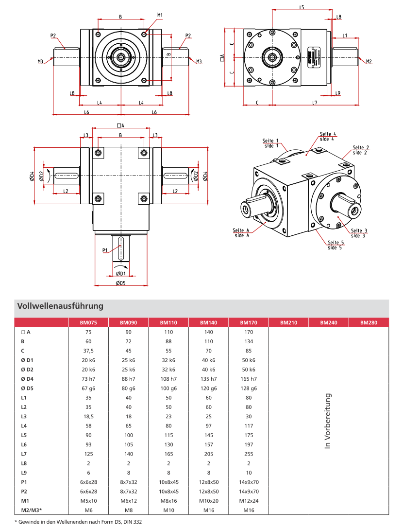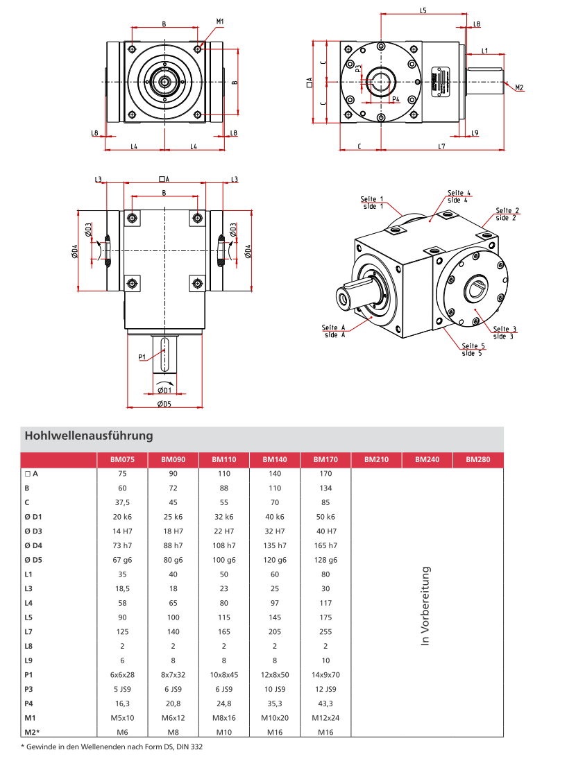 - Baugröße: | 075 | 090 | 110 | 140 | 170 |(entspricht Kantenlänge des Getriebes)