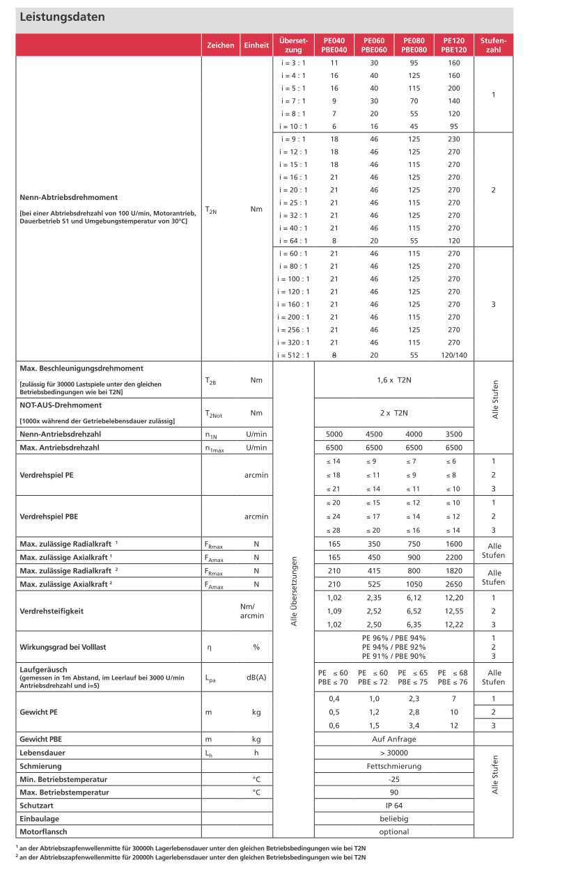 - Max. Verdrehspiel (2-stufig): ≤ 13 bis ≤ 5 arcmin